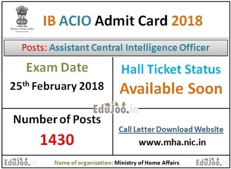 The department of ib central authority will shortly update official notification for ib acio admit card 2017 release date on its official web portal. Ib is inviting online applications for recruitment to the post of assistant central intelligence officer. In order to download the call letter, the applicants should sign in by having the necessary data like registration id and passwords, etc. Ib acio tier 2 admit card 2018 download now: .hall ticket 2021 mha ib intelligence officer call letter releasing date 2021 mha ib intelligence officer exam date 2021 check mha ib ministry of home affairs, ib.